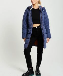 Liquorish Hooded Puffer Coat in Navy – Blue/Navy