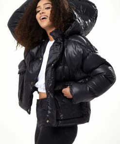 Liquorish Black Puffer Coat