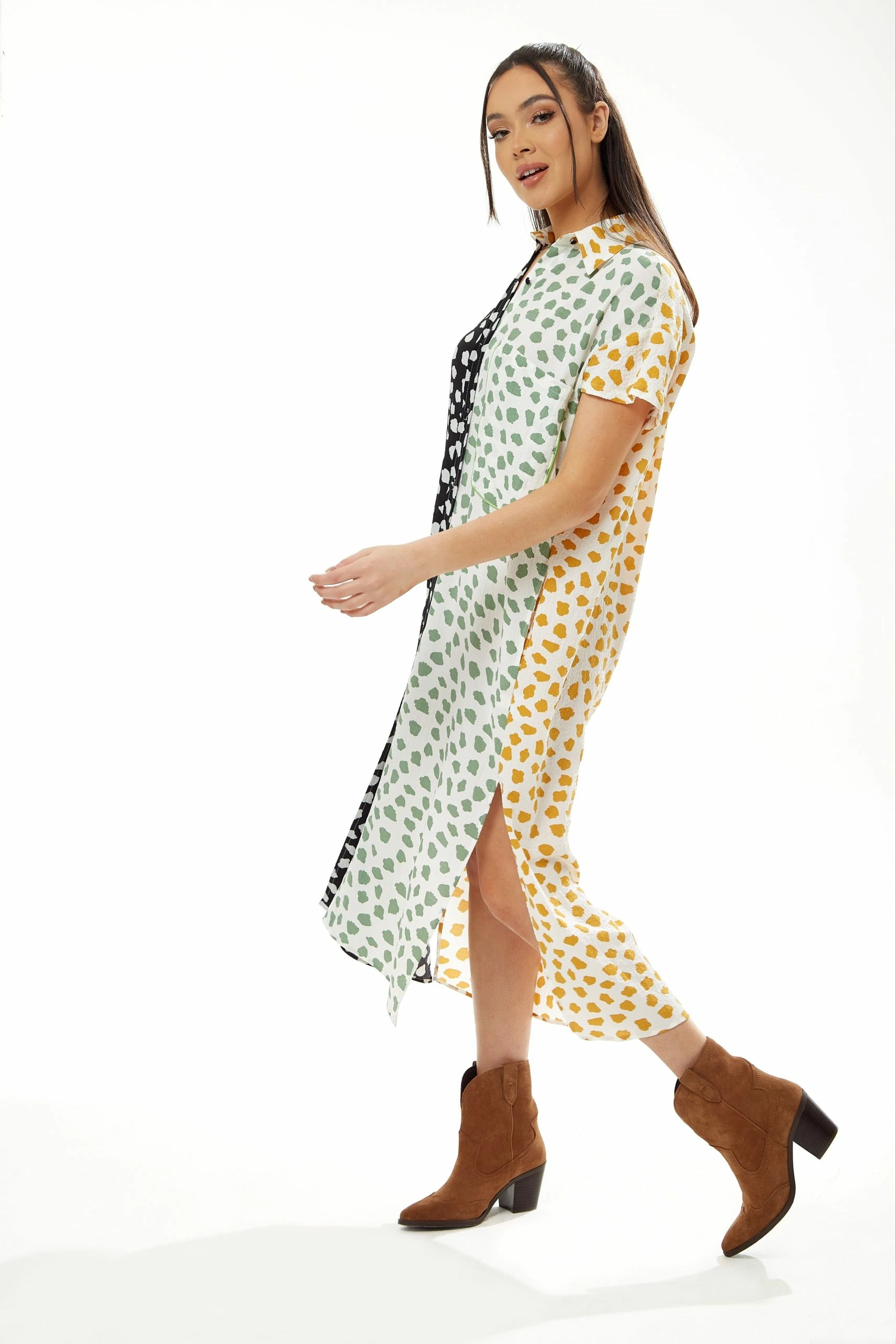 Liquorish Animal Print Oversized Shirt Dress with Yellow Collar