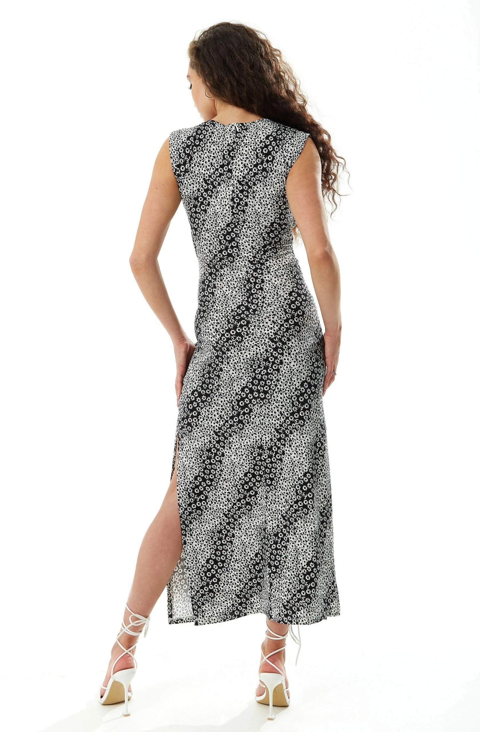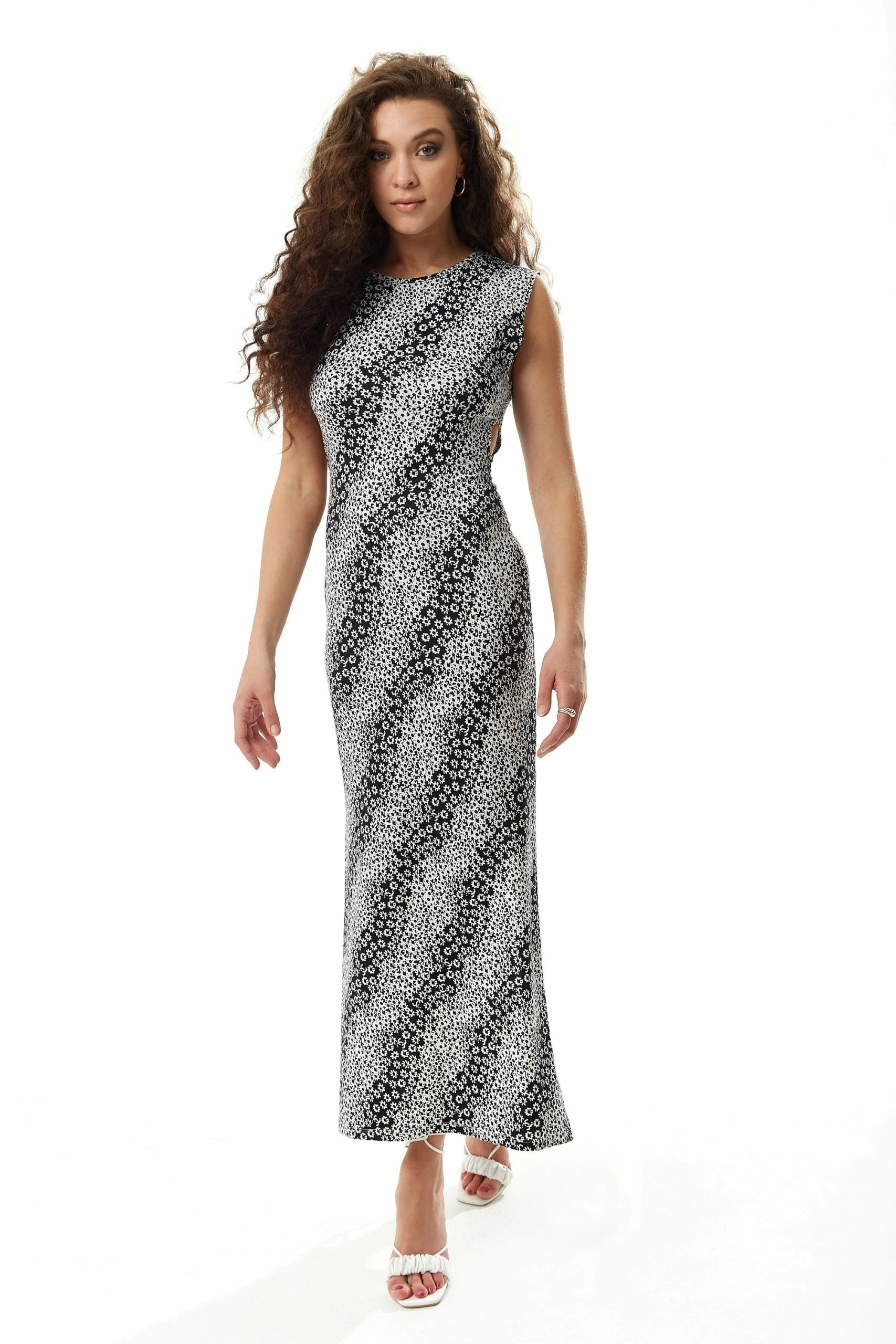 Liquorish Black and White Floral Jersey Maxi Dress with Cut out details