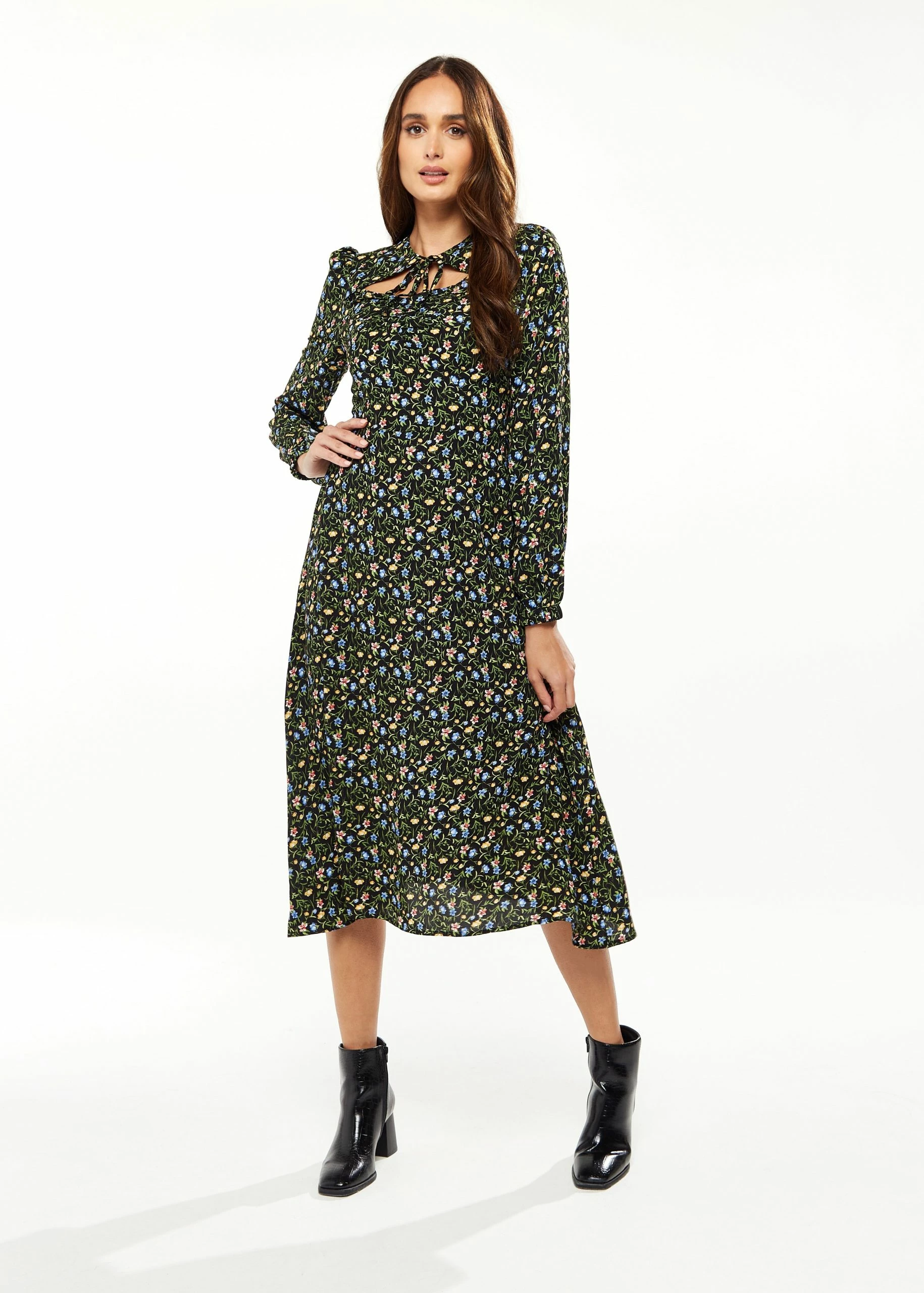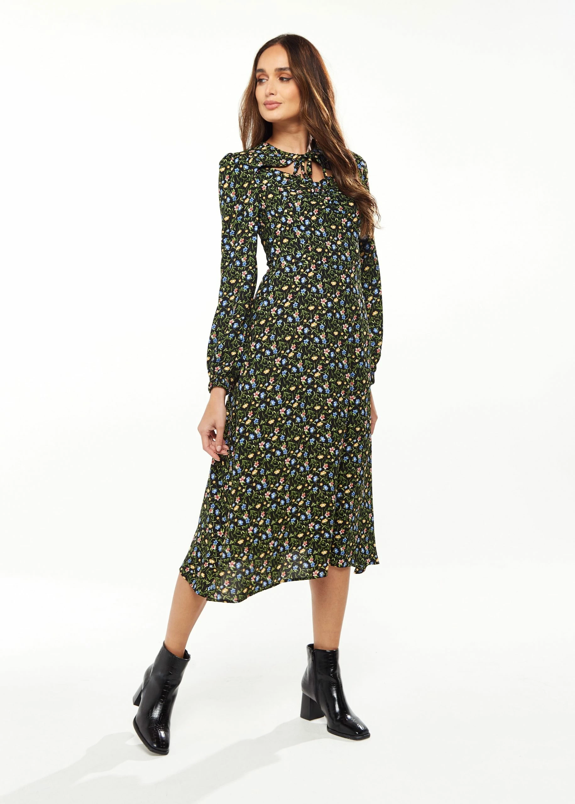 Floral print, Midi length, Long sleeves