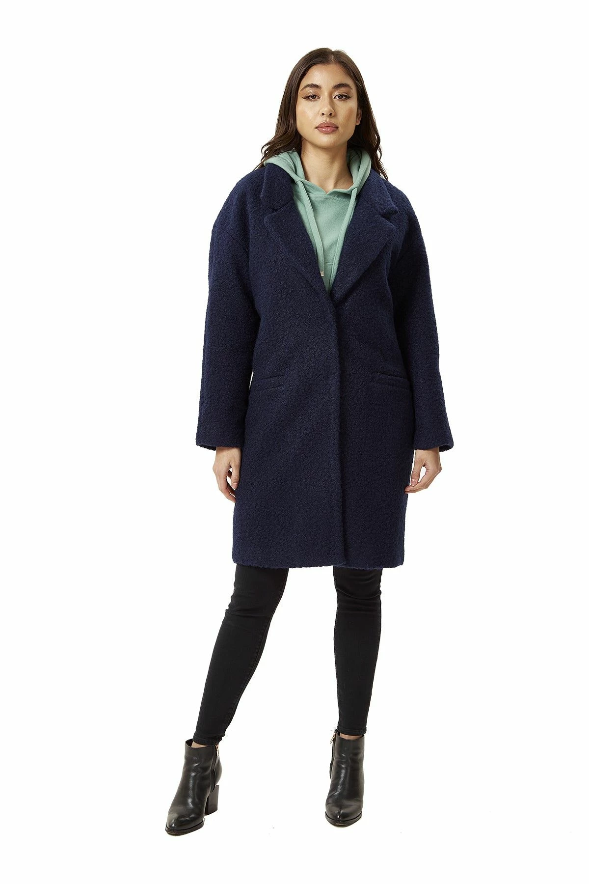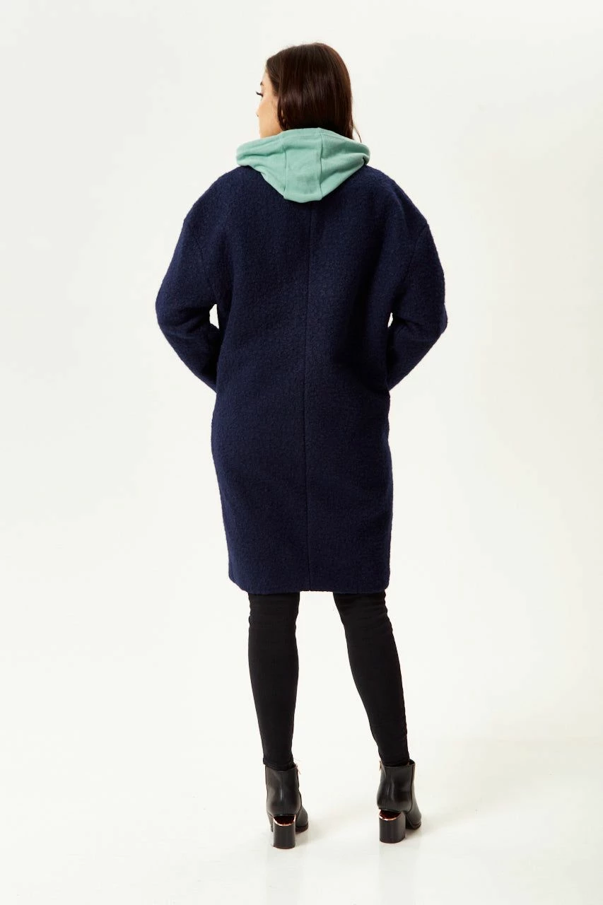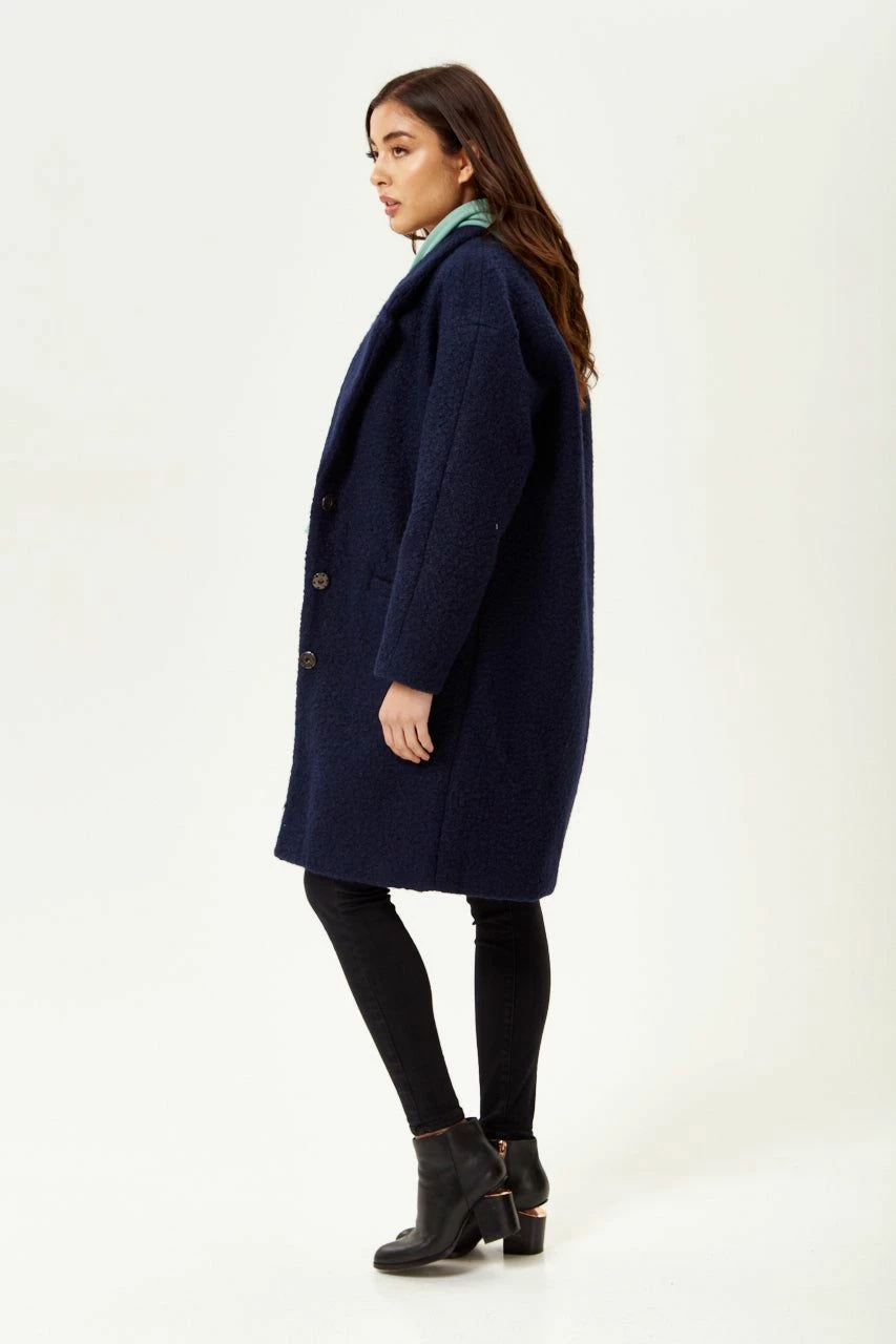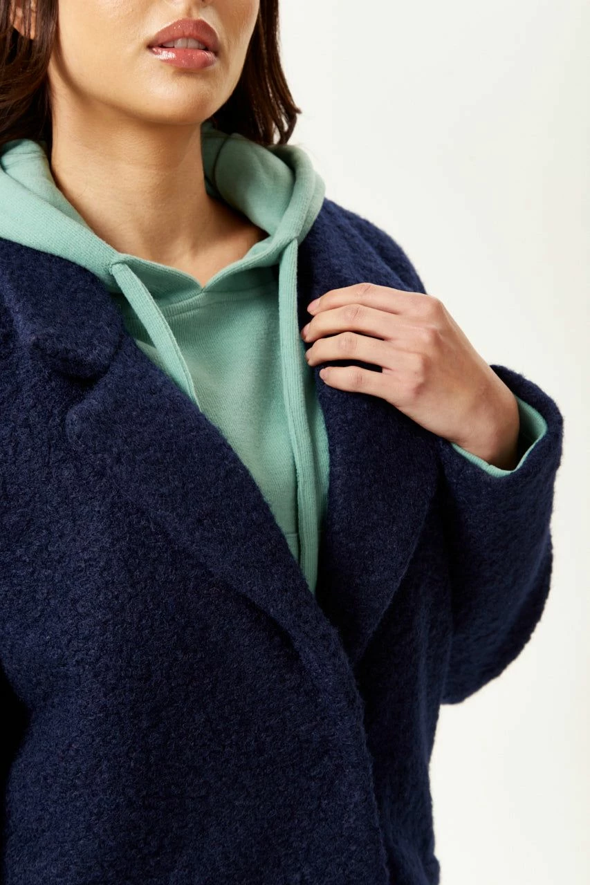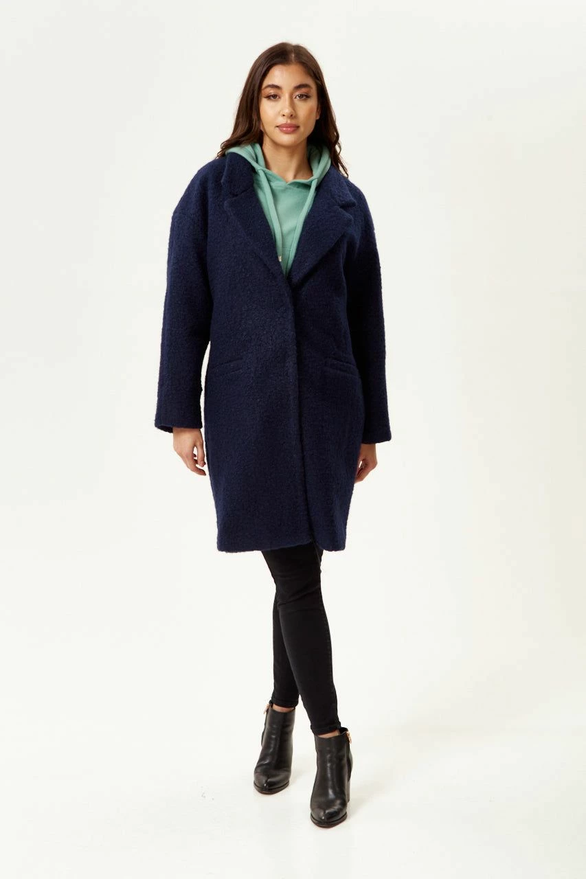 Liquorish Bouclè Coat in Navy