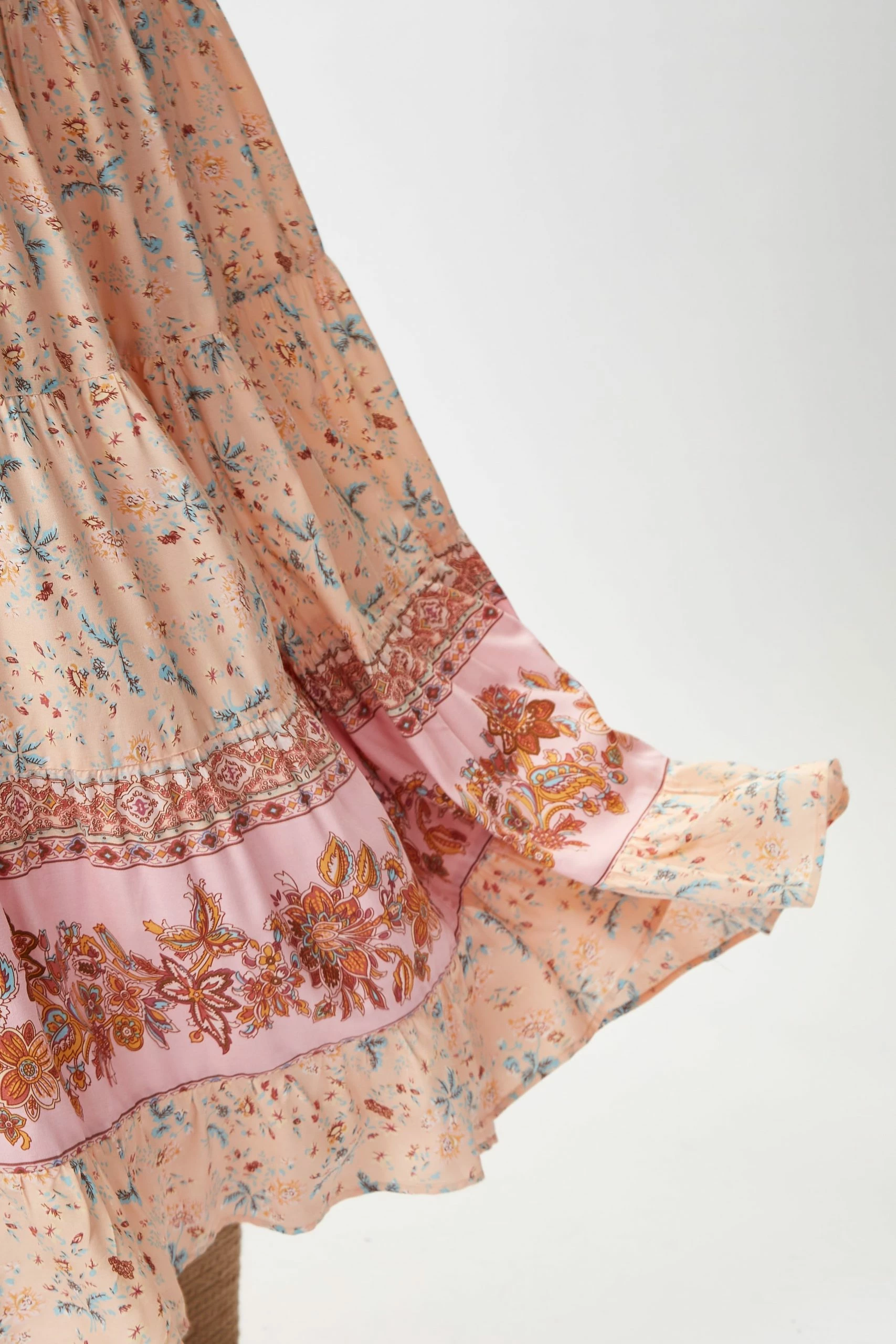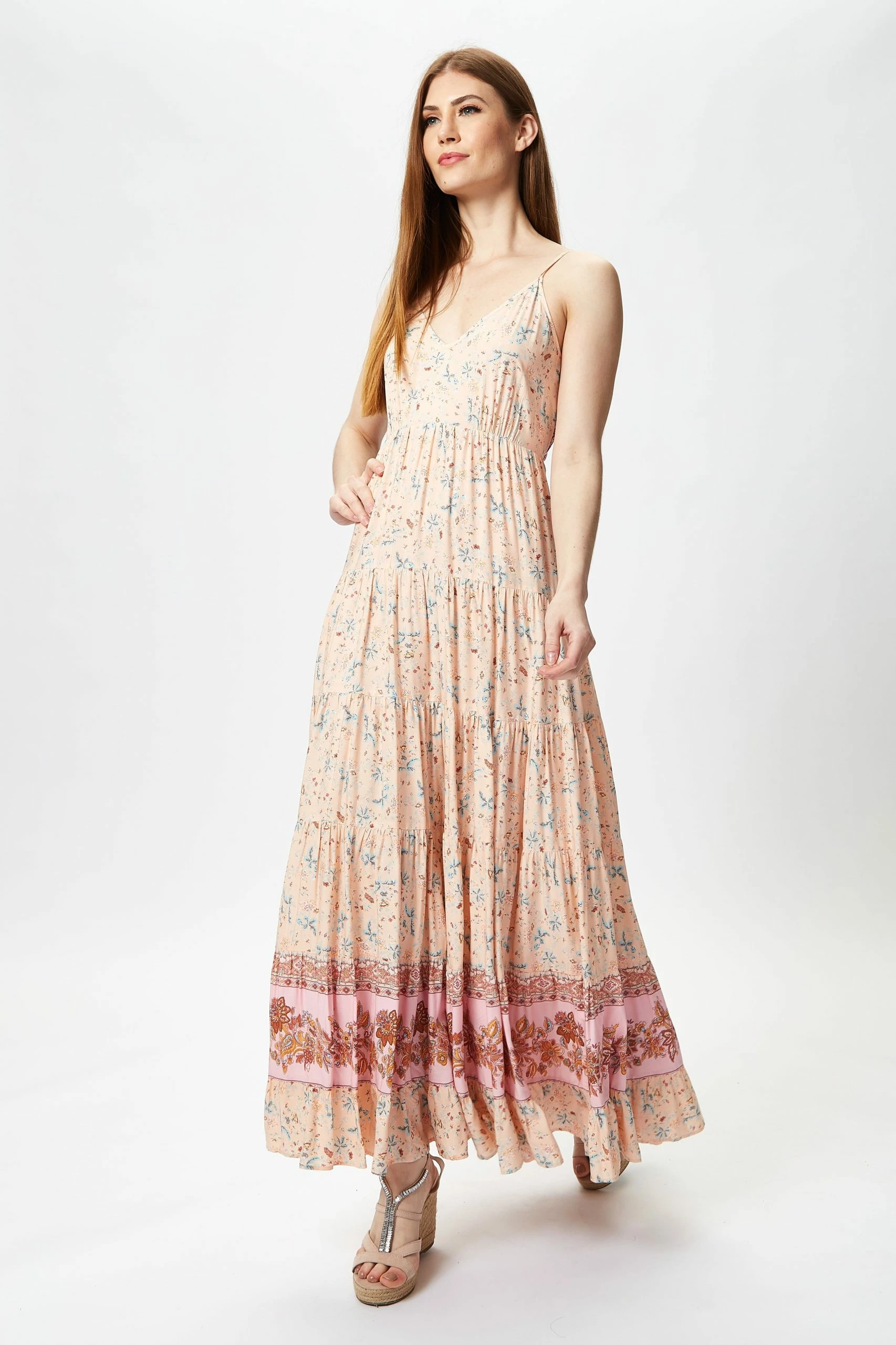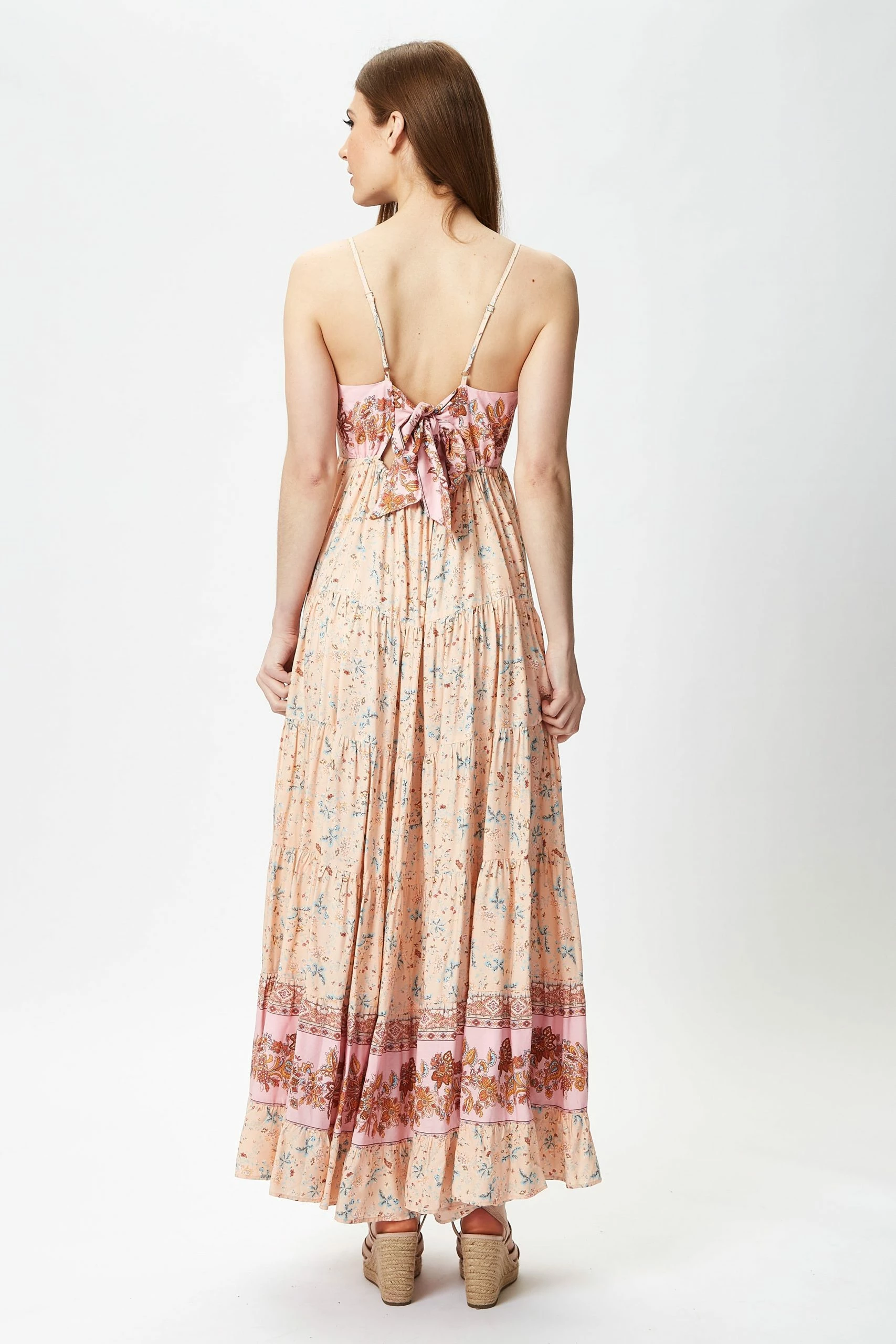 Liquorish Cami Maxi Dress in Nude Floral Print with Tie Back