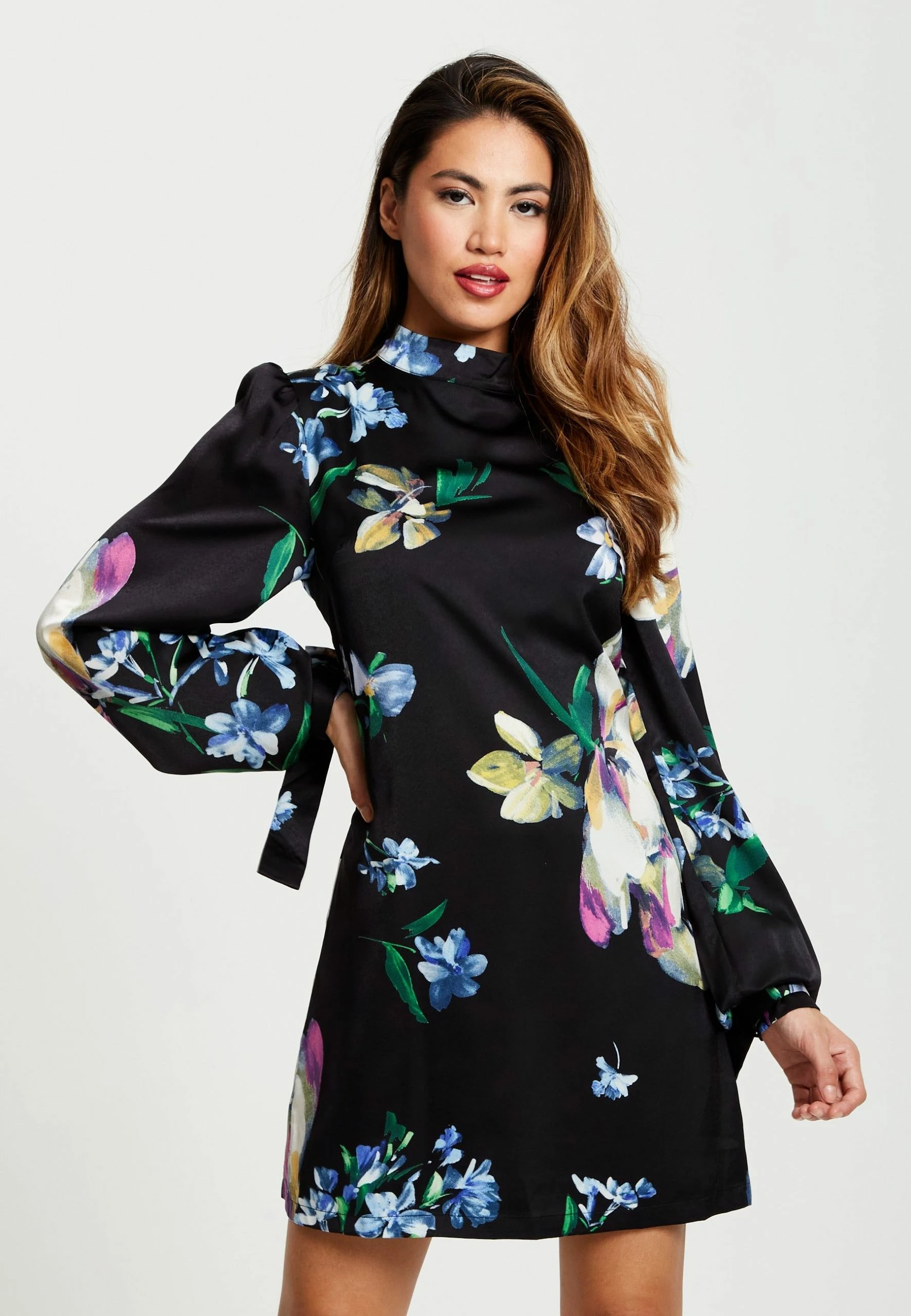 Floral print, Mini length, Long sleeves