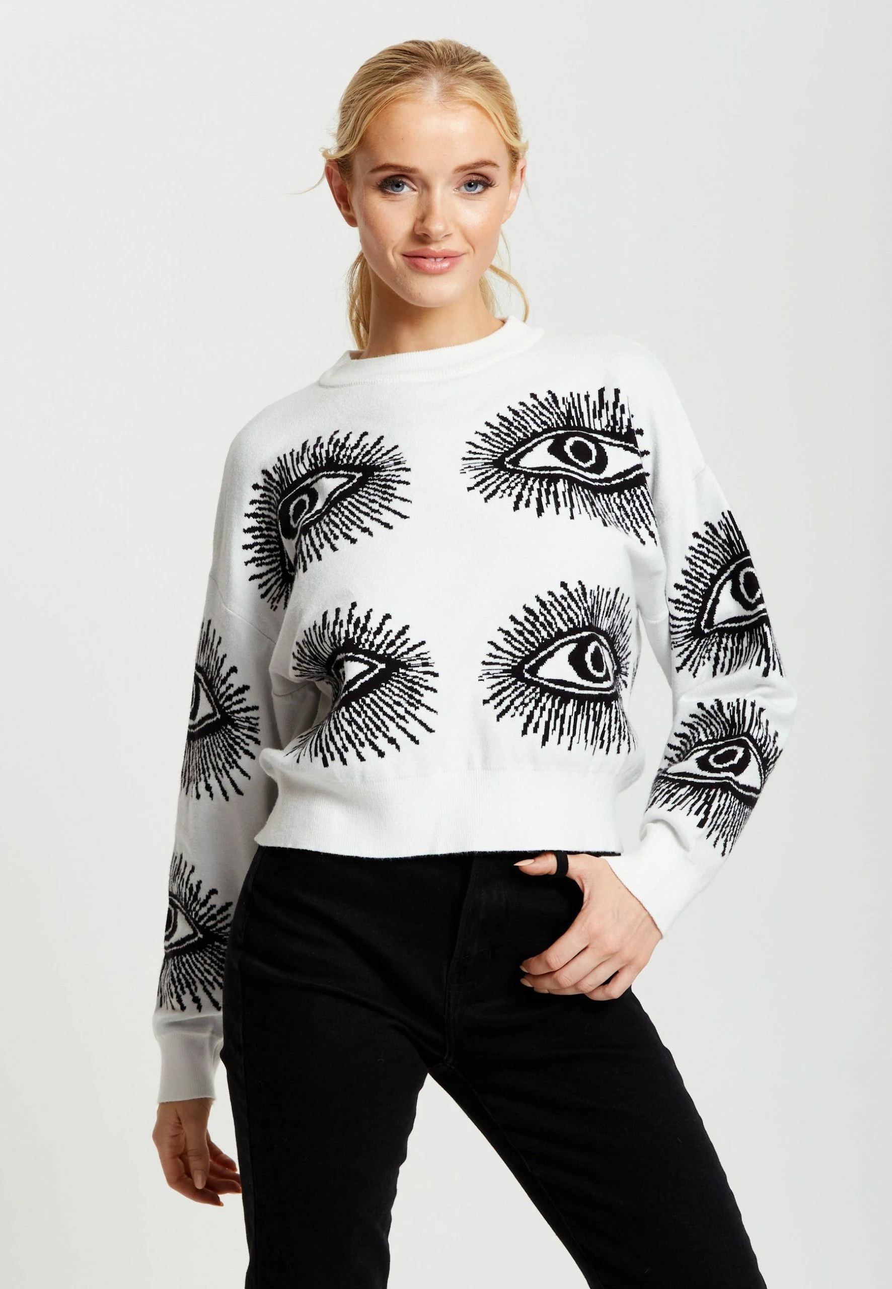 Eye pattern, Roll neck, Long sleeves