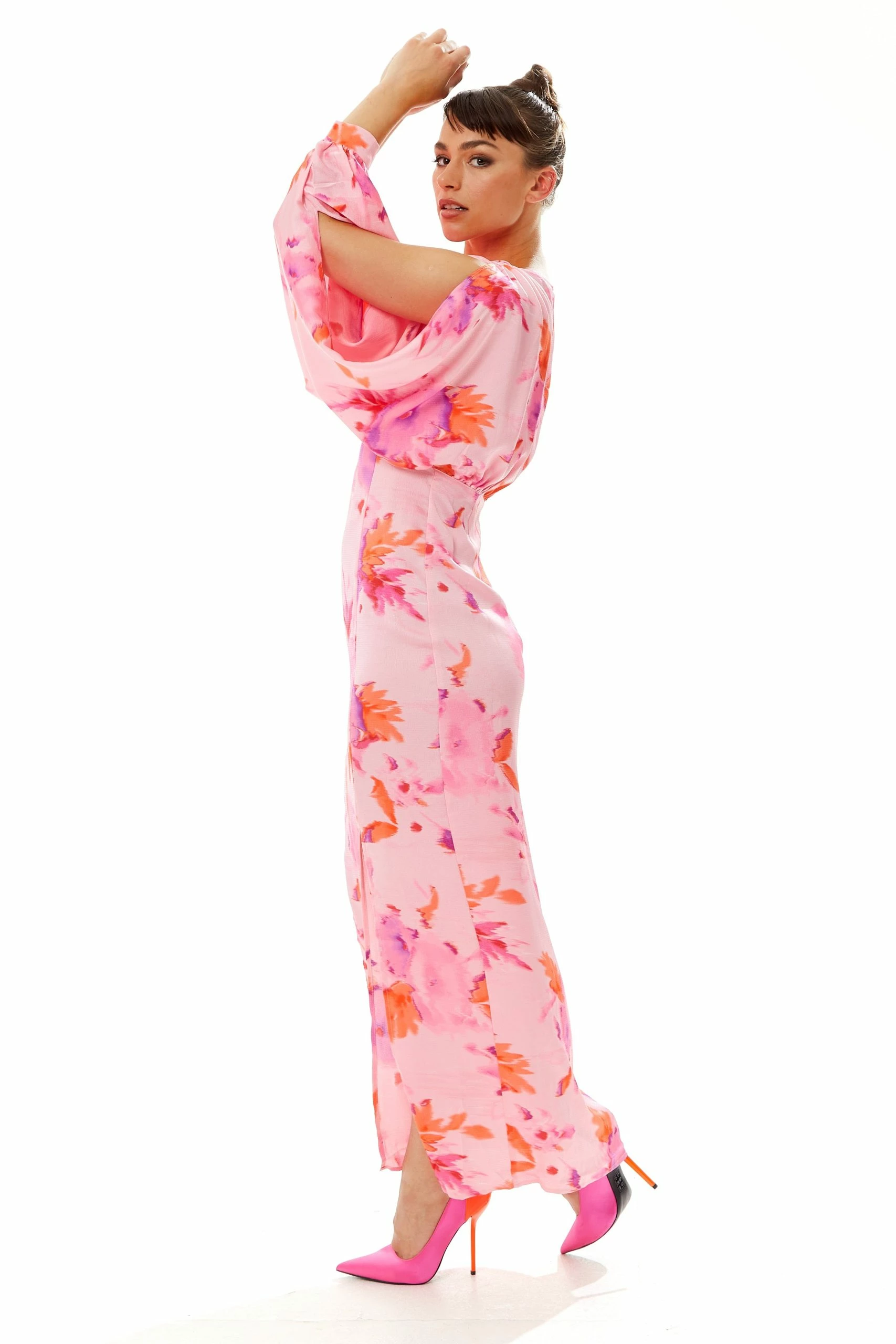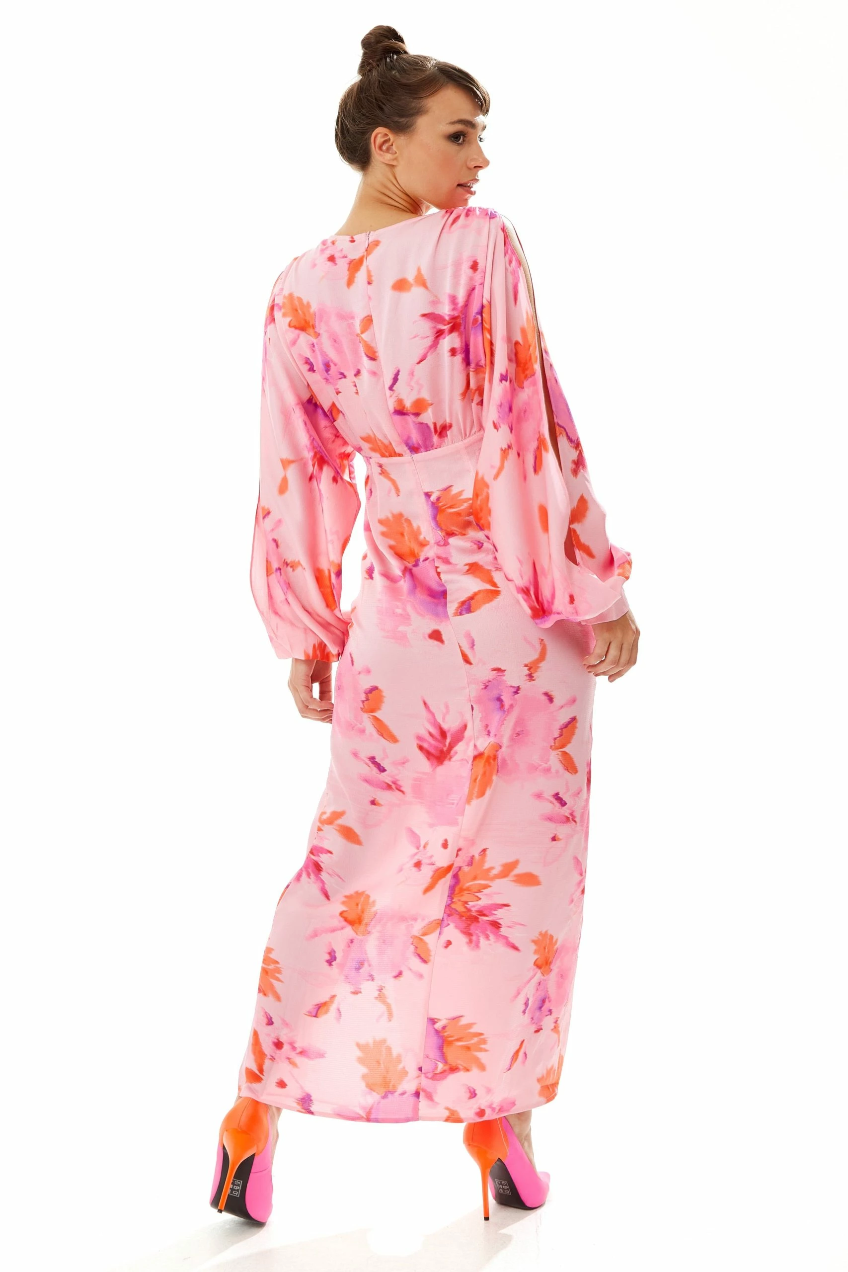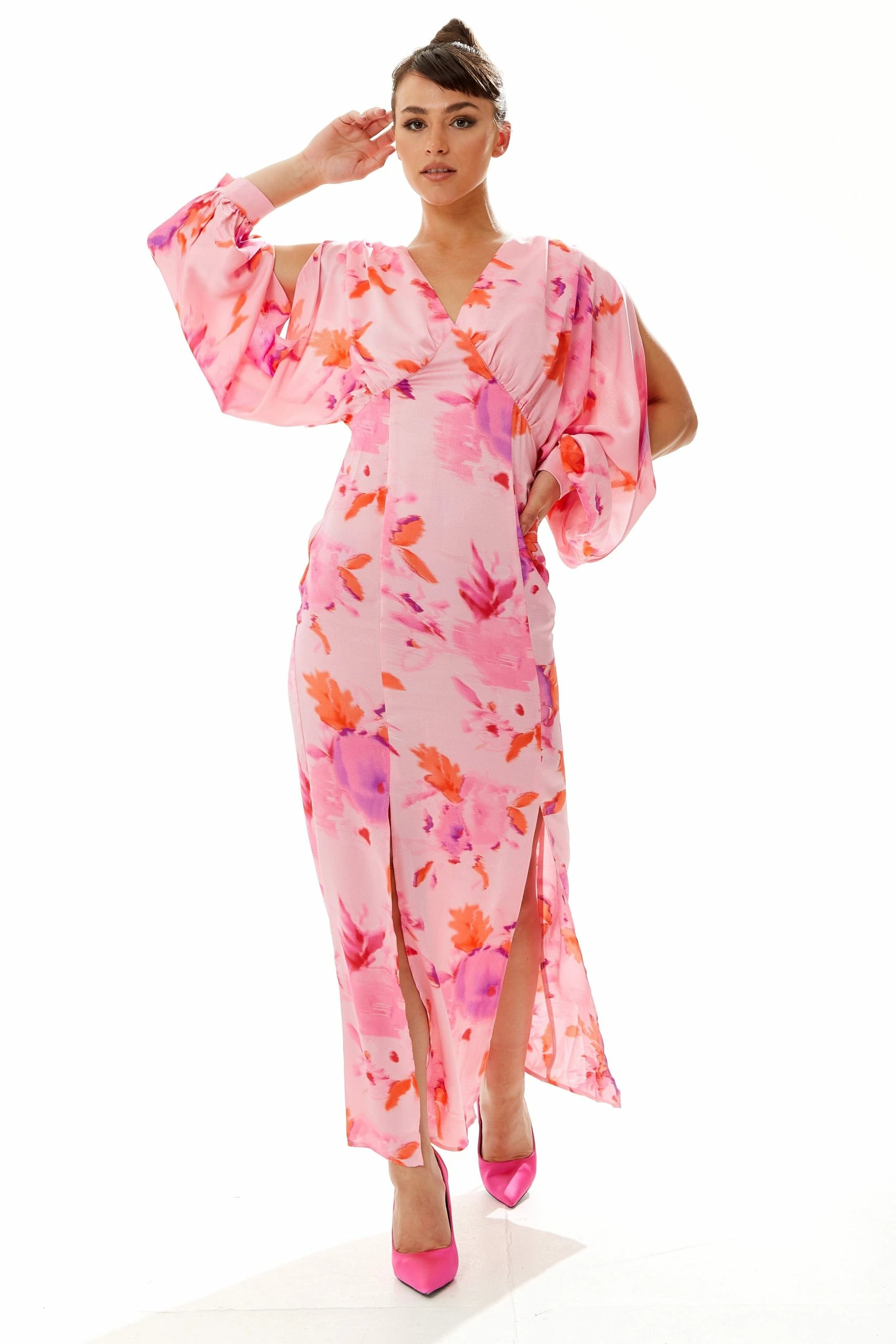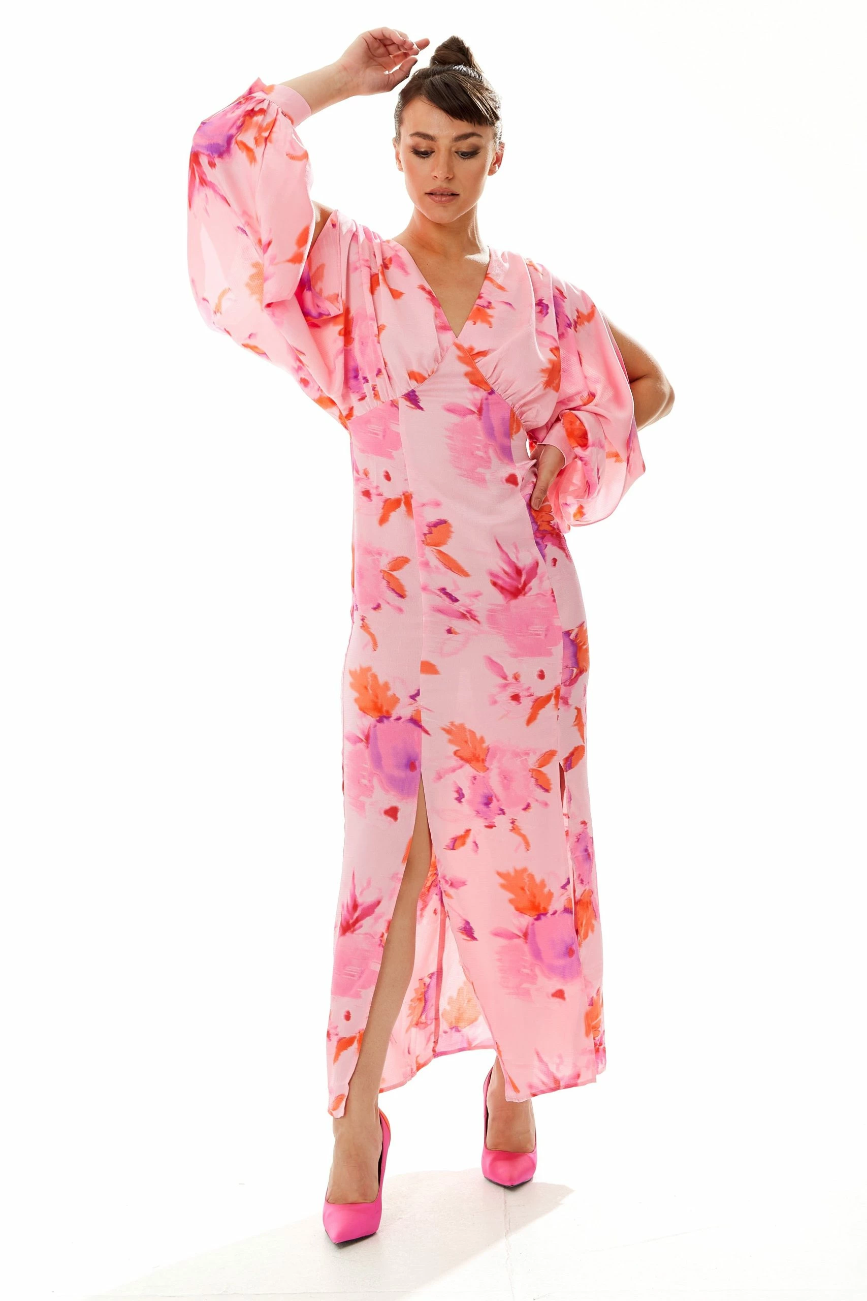 Floral print, Maxi length, Slit on sleeves, Slits on front