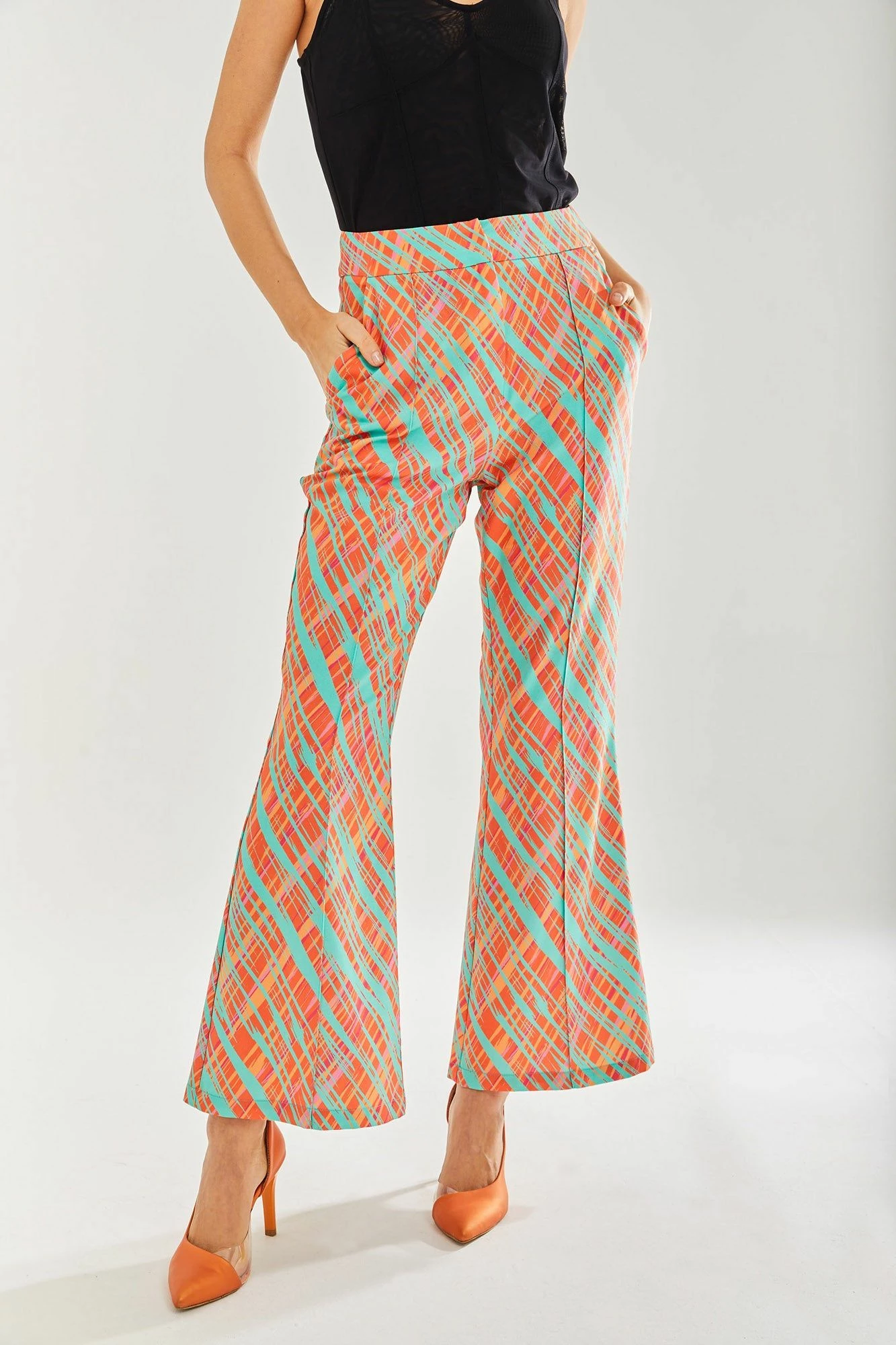 Liquorish Orange Scribble Flare Trousers