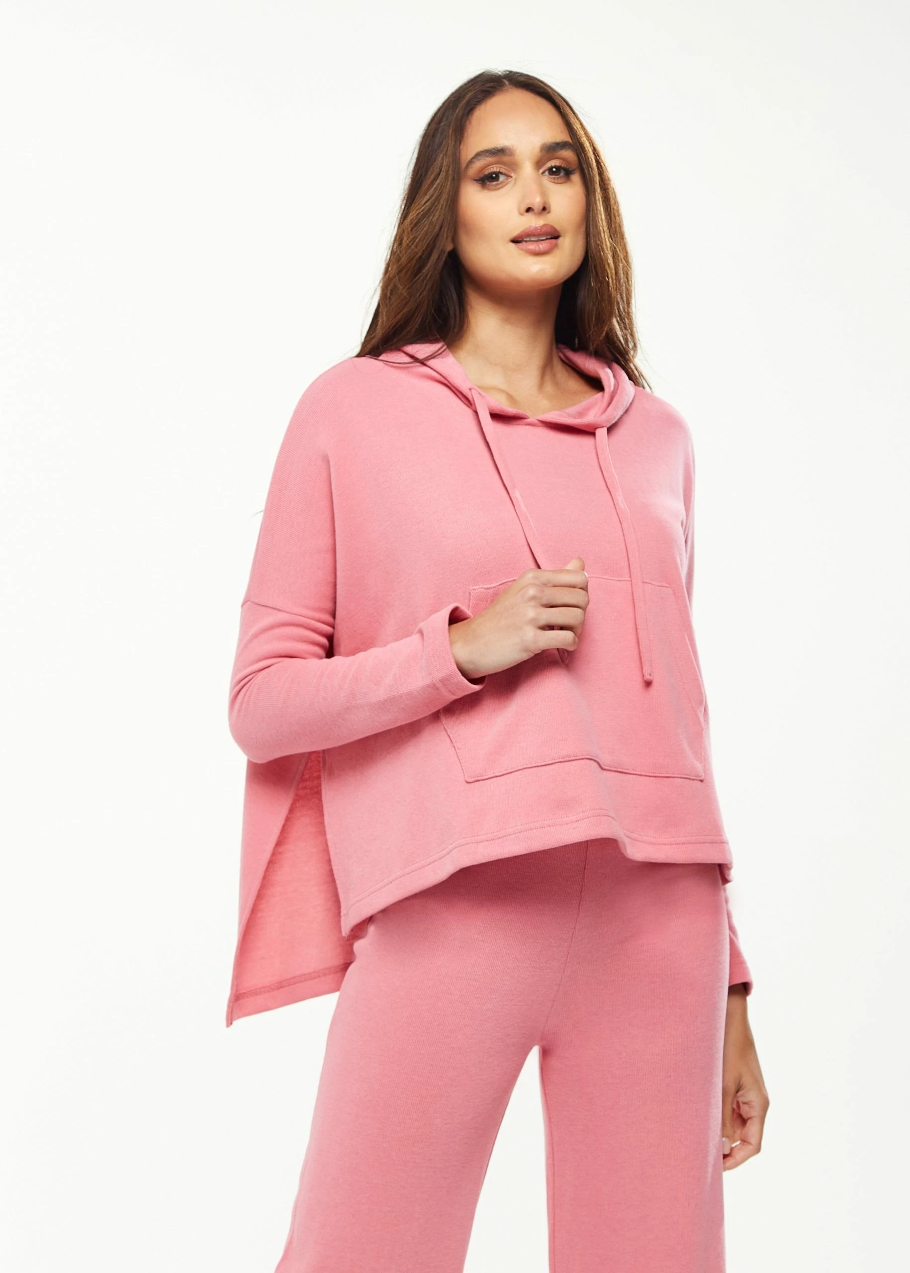 Liquorish Oversized Hooded Sweatshirt with Front Pocket in Pink