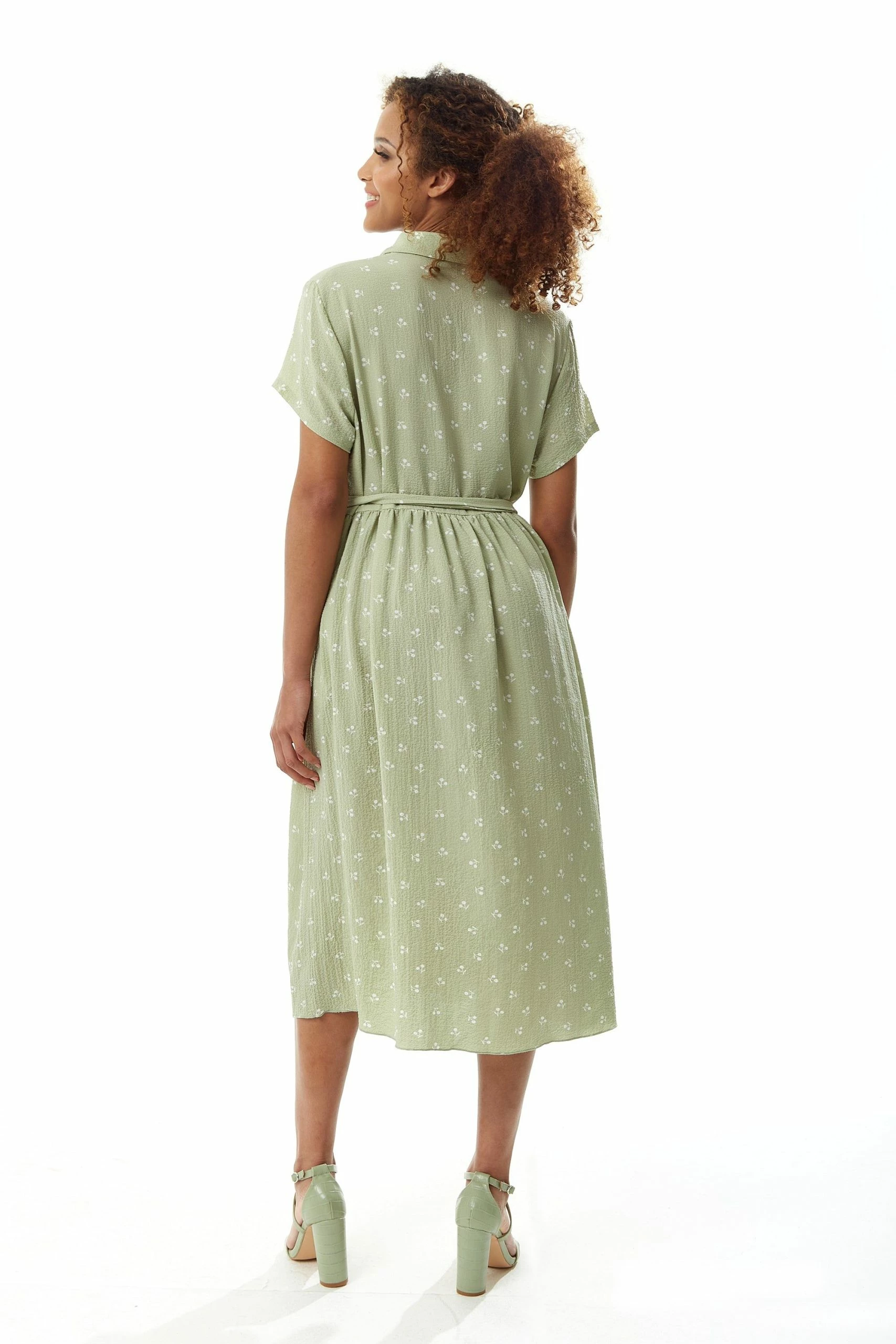 Liquorish Sage Green Cherry Print Midi Dress