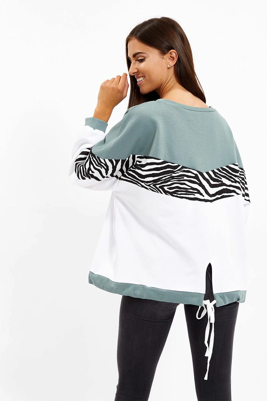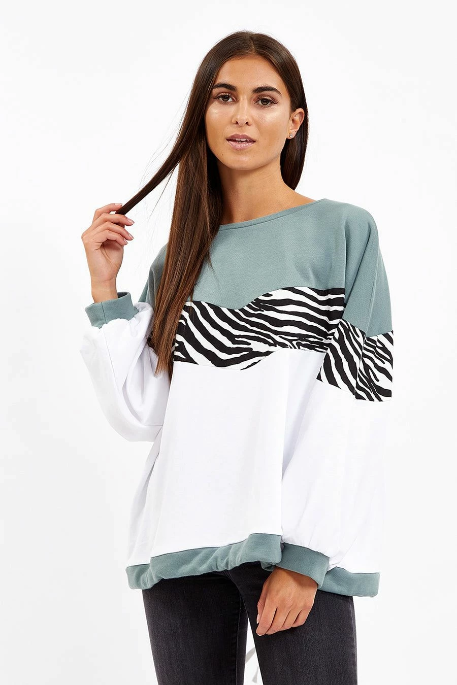 Liquorish Sage & Zebra & White Layered Sweatshirt