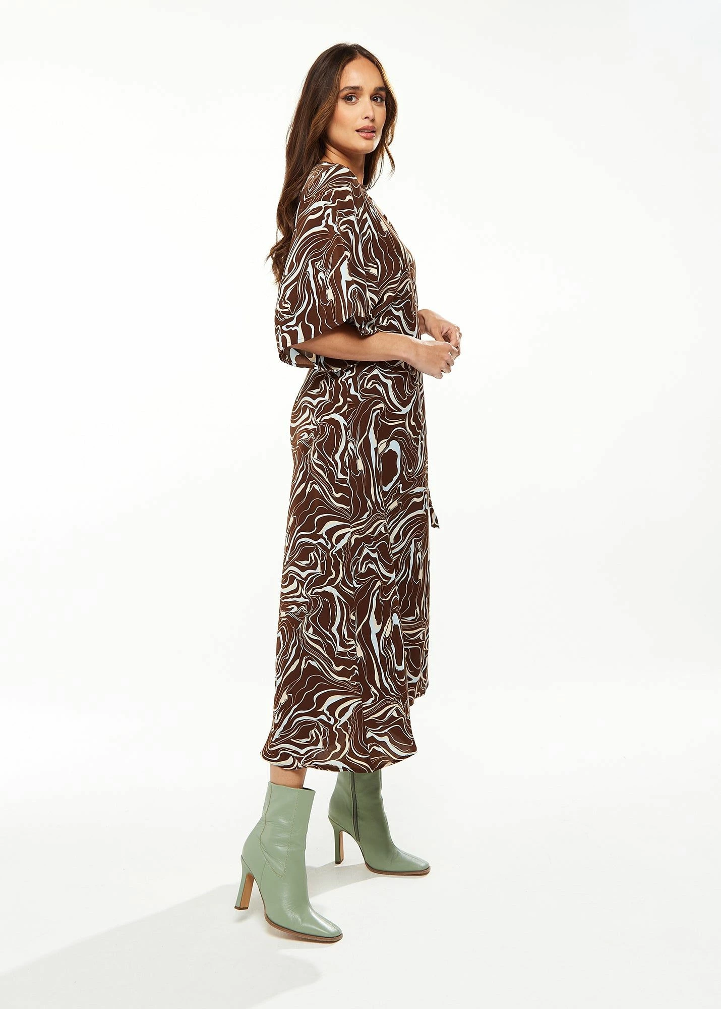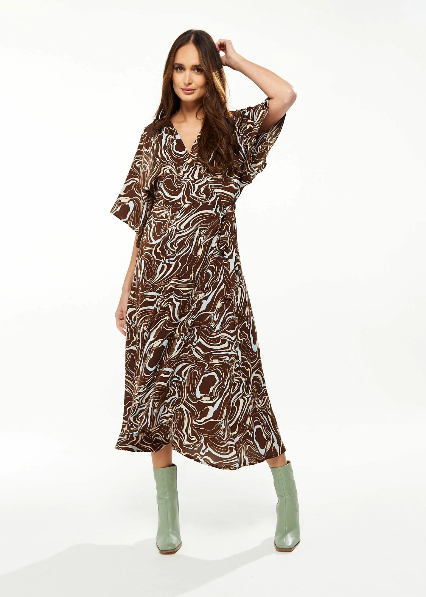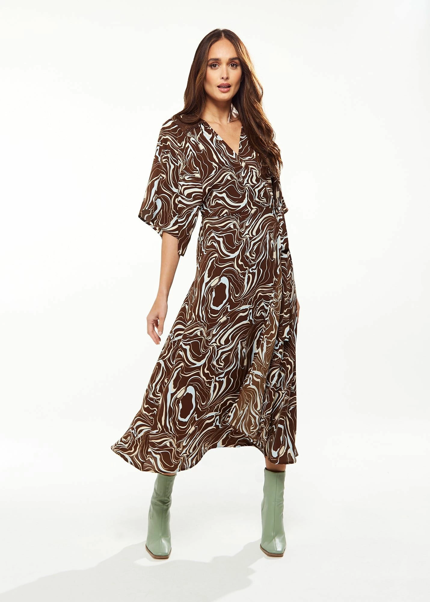 Scribble print, Wrap style, Midi length