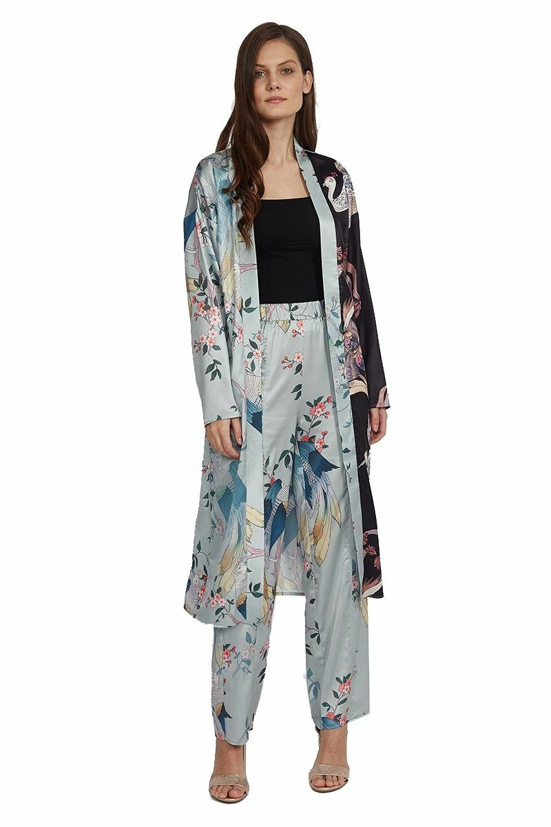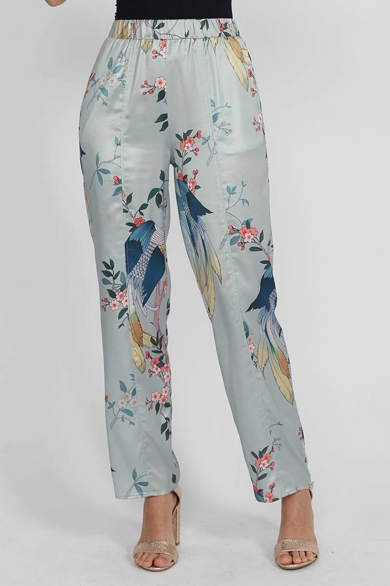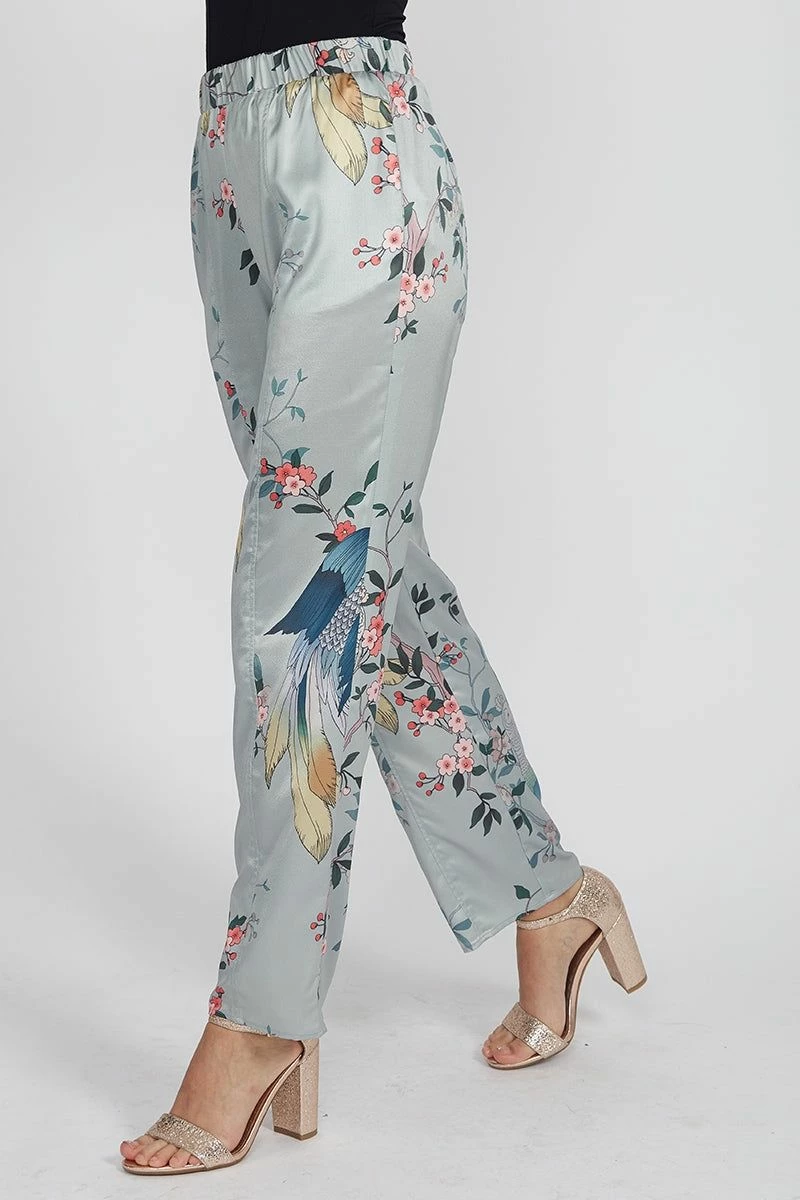 Liquorish Wide Leg Trousers in Bird Print Co-Ord